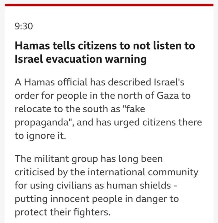 Amid escalating tensions, Israel’s precautionary evacuation notice epitomized an attempt to minimize civilian casualties. In stark contrast, Hamas’s directive to ignore this notice displayed a chilling willingness to commit war crimes by knowingly putting civilian lives in jeopardy. This calculated move, aimed at using innocent people as shields against Israeli military action, starkly highlights the ruthless and criminal nature of the ongoing battle waged by Hamas.